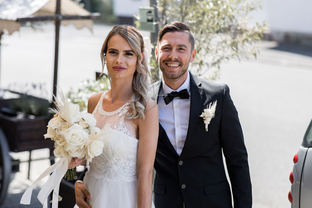 Die standesamtliche Trauung von Sina & Chris fand im Hocks Restaurant in Karben statt. Danach gab es einen Sektempfang. Gefeiert wurde bei Lunch und Torte.